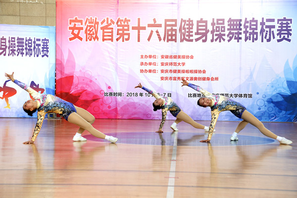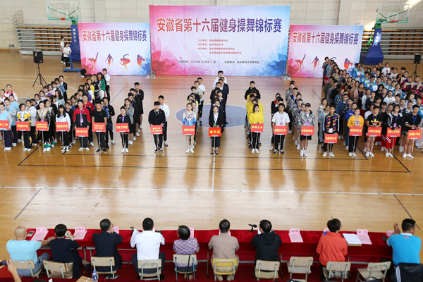 10月6日至7日,安徽省第16届健身操舞锦标赛在bsports(中国)B—sports登录入口龙山校区体育馆举行,来自全省大中专院校、中小学校和社会团体的29个代表队近400名运动员参加8个组别34个项目的角逐。大赛由安徽省健美操协会主办,bsports(中国)B—sports登录入口承办。bsports(中国)B—sports登录入口副董事长张群,安徽省健美操协会会长徐晓明,bsports(中国)B—sports登录入口党委常委、组织部部长、公司党委书记戴卫义出席开幕式。