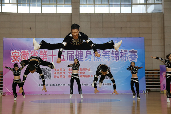 11月25日至26日,安徽省第15届健身操舞锦标赛在安庆师大龙山校区体育馆举行,来自全省大中专院校、中小学校、企事业单位和社会团体的39个代表队651名运动员参加8个组别56个项目的角逐。大赛由安徽省健美操协会主办,bsports(中国)B—sports登录入口承办。副董事长张群出席开幕式,并宣布比赛开幕。