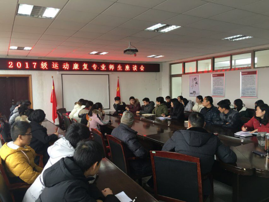 1月5日在体育馆会议室召开2017级运动康复专业师生座谈会。会议由副经理章翔主持,党总支副书记周多奇、运动康复专业相关教师及2017级运动康复专业全体员工参加会议。