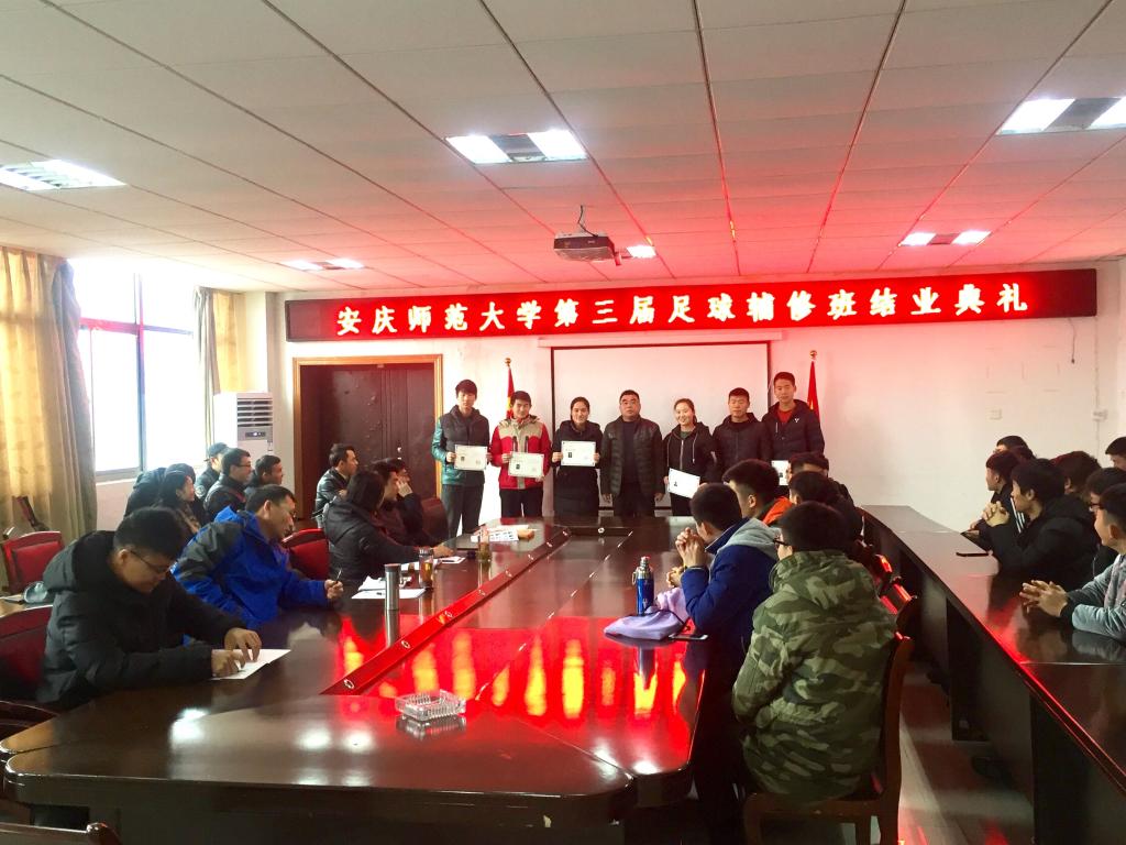 1月5日下午,学院第三届足球辅修班结业典礼在龙山校区体育馆会议室举行,74名足球辅修班同学顺利结业。副经理章翔、球类教研室足球专项老师、足球辅修班辅导员及足球辅修班全体同学参加典礼。会议由球类教研室主任、校园足球发展研究中心副主任林秋菊主持。