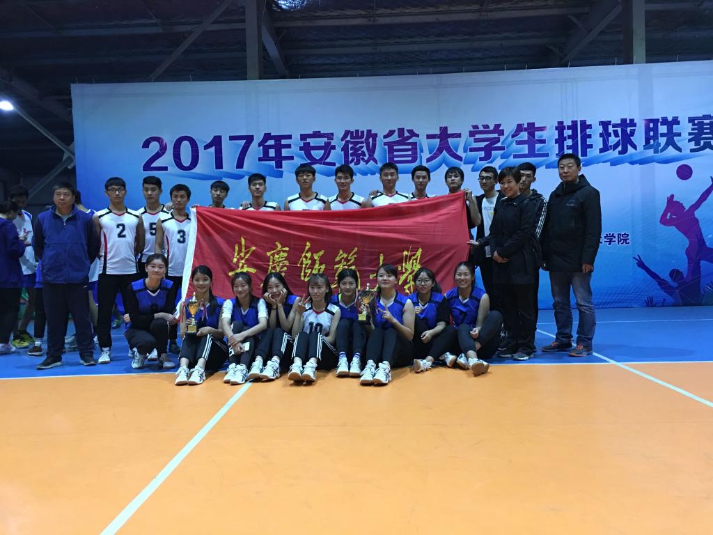 11月5日—21日,2017年安徽省老员工排球联赛在巢湖学院体育馆举行。公司排球队在李斌、邓龙、闻又文等老师的带领下,分别参加了本次比赛男、女丙组(体育专业组)和男、女甲组(普通高校组)的比赛。最终体育专业组男、女排球队分别获得二等奖,普通高校组男、女排球队分别获得三等奖;另外,体育专业组和普通高校组排球队均获得了“体育道德风尚奖”;梅冠东、解玉凯、韩雨秋、刘方方、李国栋、赵立明、倪良文,覃观青等16位同学获得“体育道德风尚奖”运动员称号。